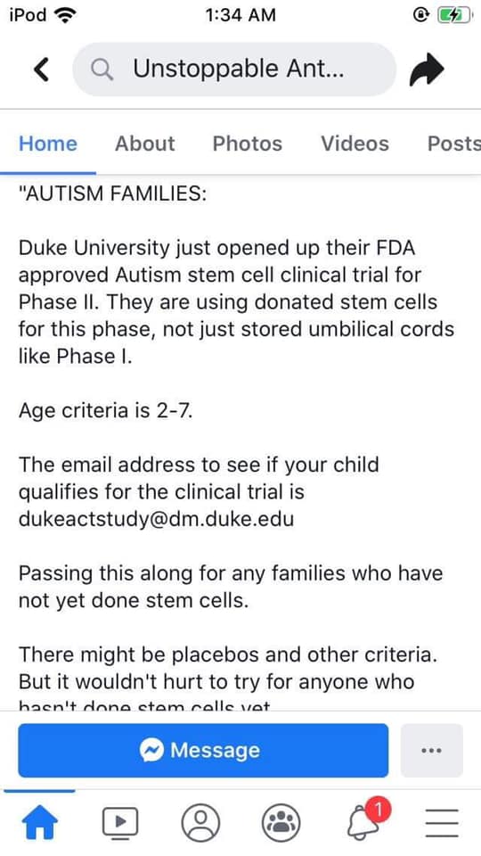 Heed the FDA’s Warning. This child is in extreme danger and the parents are too blind to see it. The largest autism charity is promoting her experimenting on her child instead of helping him and accepting him.