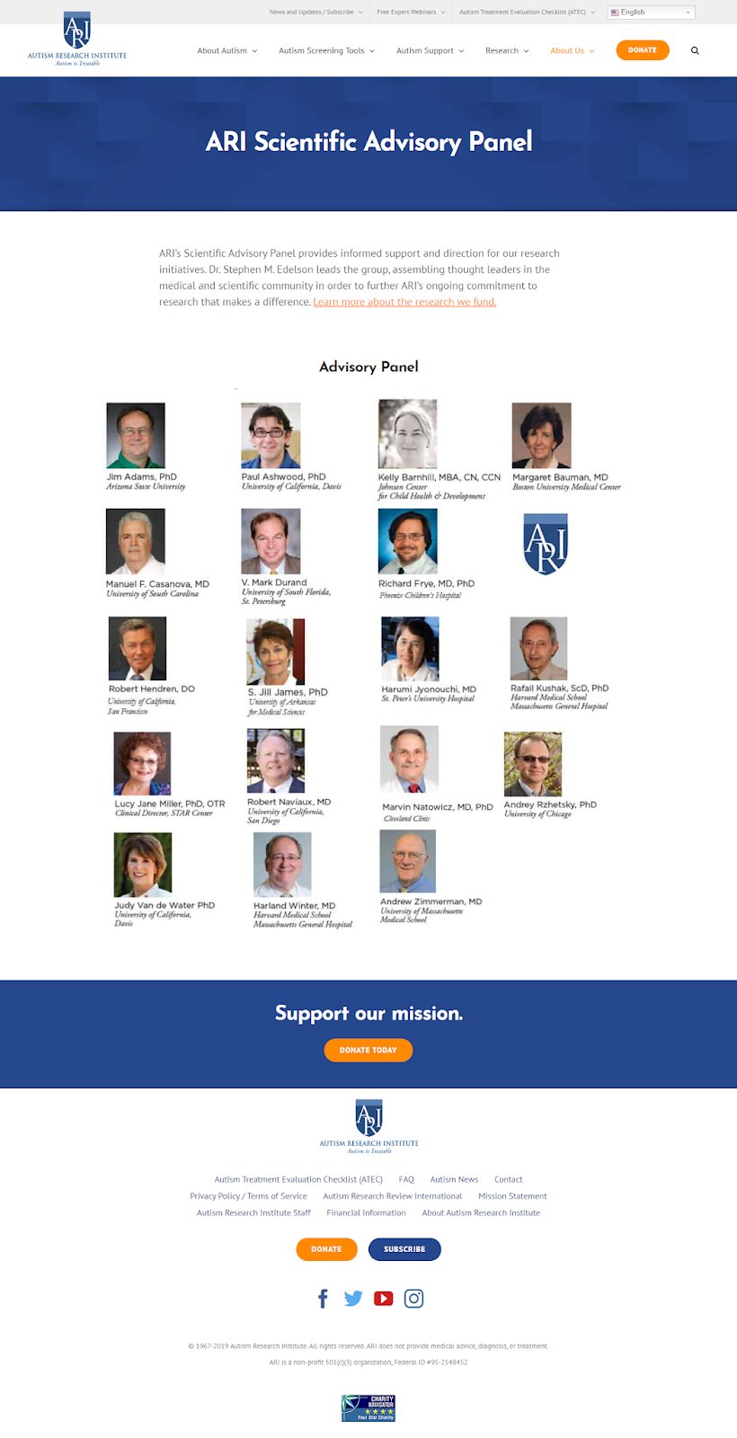 Adams is on the Science Advisory Panel at Autism Research Institute