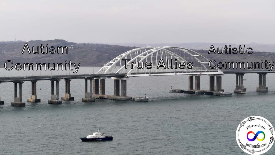 What are true allies? They are non Autistics that respect Autistic culture. They support Autistic people the best they can while respecting the rights and dignity of Autistic people. I do believe they belong in a separate category. True Allies fight for Autistic rights along side Autistic Activists. I picture this group as the bridge between the Autistic Community and Autism Community.