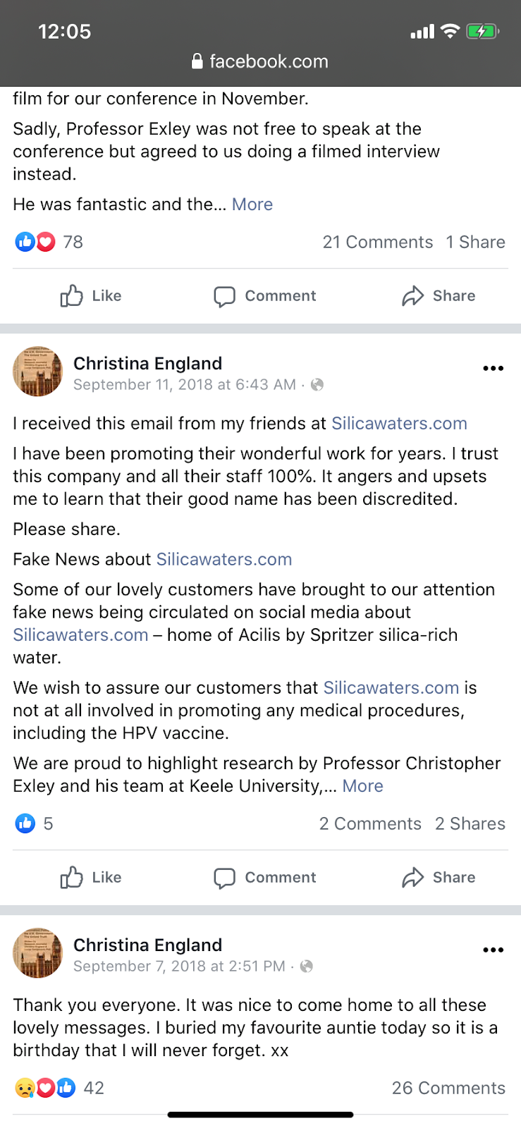 On October 26, 2019 an article was released in the UK about silica water being advertised as a “treatment” for autism. Emma had contacted the media about this ridiculous claim. What does this have to do with Christina England?