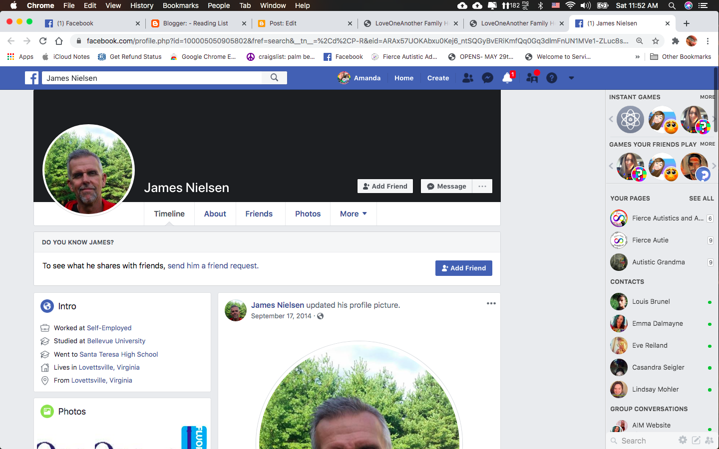 His name is James Darrell Neilsen and he lives in the State of Virginia. He is 59 years old. He is married to He is an anti fluoride activist. He is pro Trump. Other autistic activists helped me find his facebook profiles.