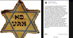 Arizona and New York have new vaccine rules have been met with protests. Some of these protests lean heavily on Holocaust Comparisons. On Facebook, the Star of David imagery is commonly used by anti vaxxers. They draw the comparison that the strict vaccine rule and government sponsored genocide are one in the same.