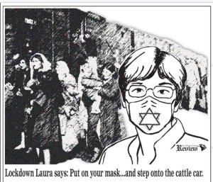There has been references to lockdown and mask wearing compared to the Holocaust. There was one cartoon that uses the imagery of the Yellow Star badge. It was in a weekly Kansas newspaper owned by a county Republican Party Chairman. It has been condemned for comparing a state mandate requiring all residents to wear a mask in public due to the coronavirus pandemic with the roundup of Jews and other marginalized groups during the Holocaust.