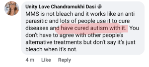 The other day, I was messaged on my Facebook page about this one person who was maintaining that MMS is not bleach. This was an an anti neurodiversity group. We do not see these because we are not in these groups.