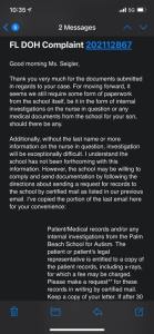 So the investigator emailed me back. They need school records and the nurse’s first name. First thing I did was call the first school and and asked. They thought I had it already so they gave it to me. I emailed the investigator with this information. Then I called the new school because the old school said the would not give me the records because the new school has it. The new school will give them to me tomorrow.