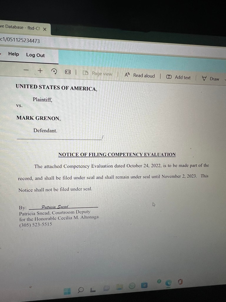 Mark Grenon also had a psych evaluation. I would love to see this. There was a notice of filing for a competency hearing. The judge was covering all bases.