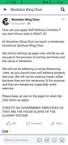 He owns a martial arts studio in Southampton, UK called Woolston Wing Chun. The style of martial arts is functional Wing Chun Kung Fu. He specifically will not allow government employees to partake in his lessons.
