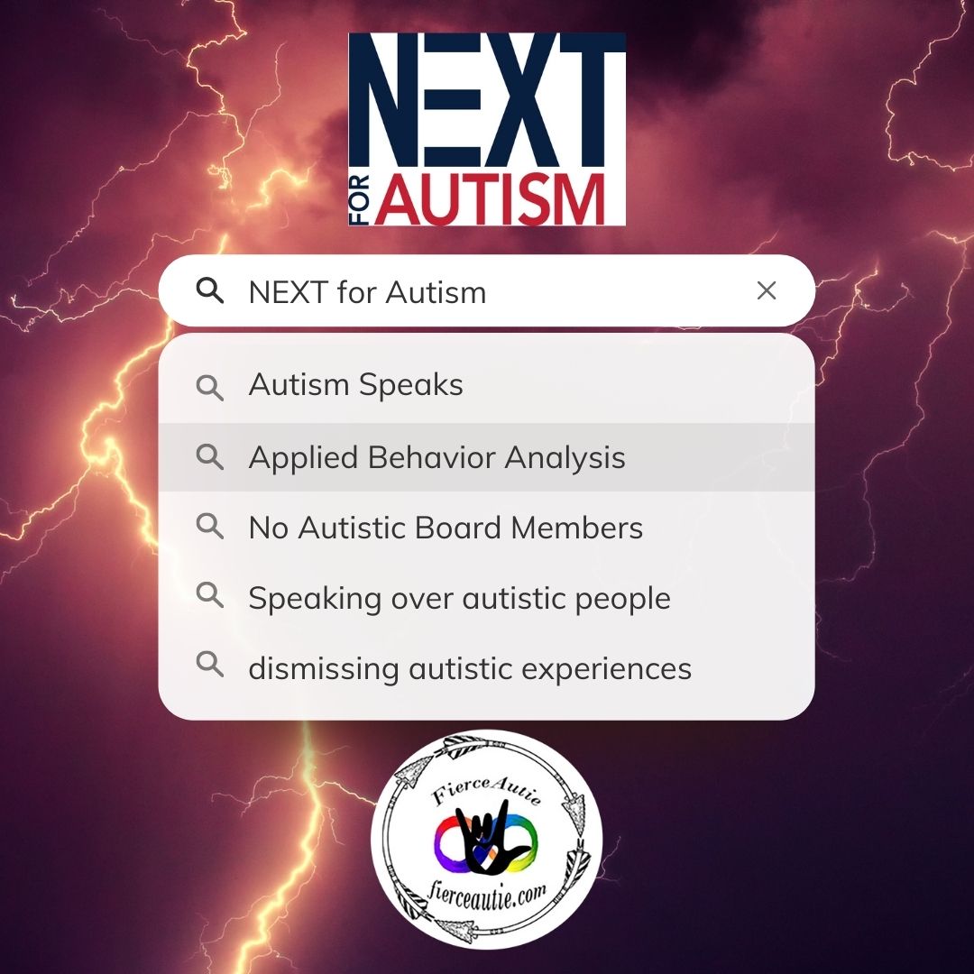 Soon after this was announced, the autistic community spoke out loud and proud. The autistic community say Autism Speaks and NEXT by extension support ABA which is abuse and torture. NEXT told the autistic community that we are spreading “outrageous misinformation.”