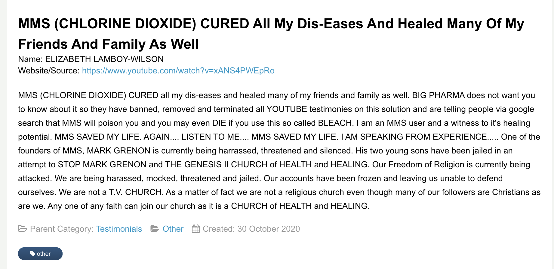 She talks about being diagnosed with HPV and the doctors not telling her. She talks about treating herself with MMS. She has been advocating for the use of MMS since this was posted in May 2019. Its posted here so they do not get any more views.