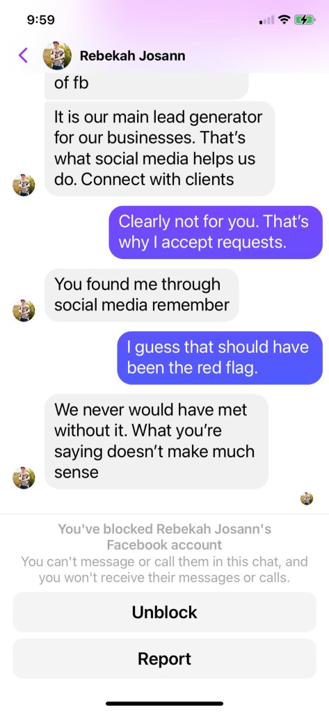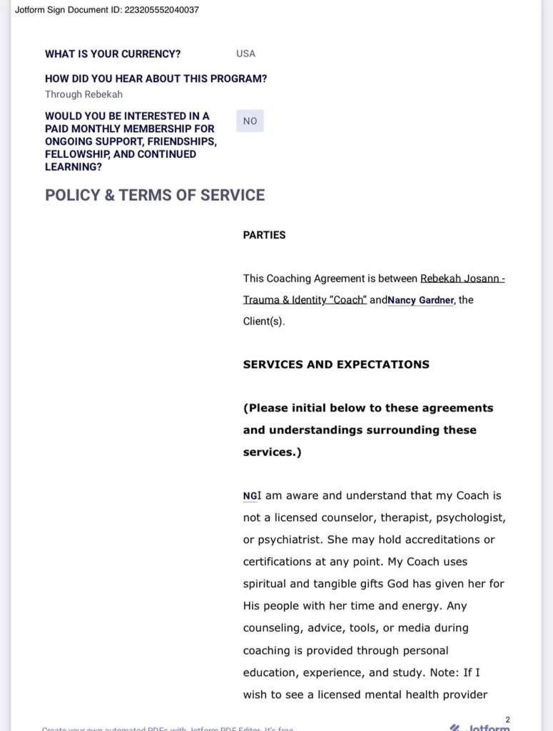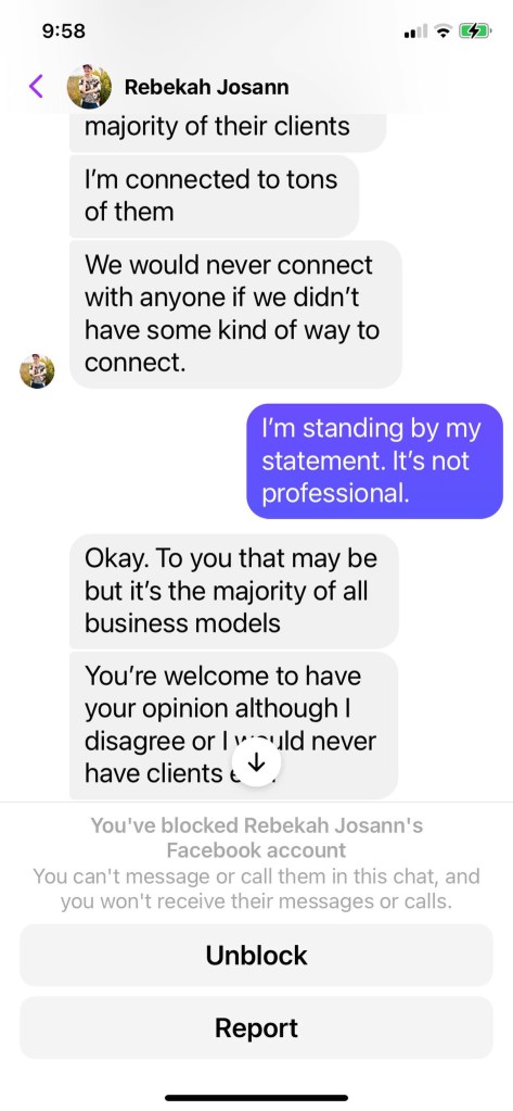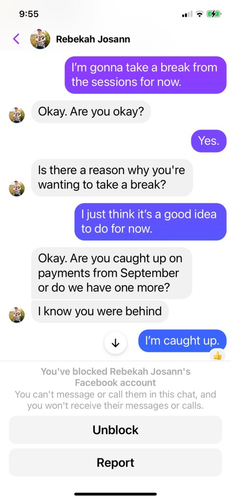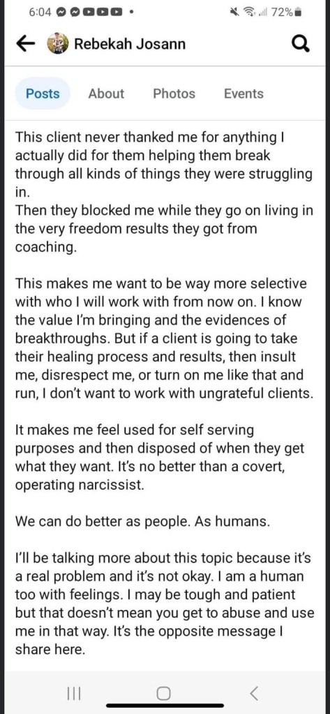 Rebekah messaged her claiming that she could do numerous things to help her with their trauma. She had sticker shock at the price but Rebekah manipulated her into paying her outrageous fee after making false promises.
