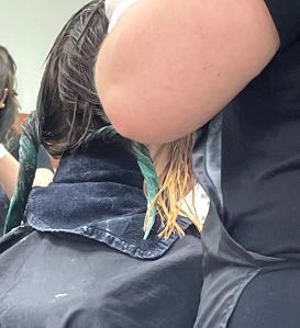She asked if she can get her hair cut and the tips of her hair dyed green. I had a great week as far as work goes, so I said that was fine. After work, I brought her into the place. I have never seen her so excited. The stylist was so sweet and went slow with her. There was an incident in foster care where her hair was cut without her consent so this is a must with her.
