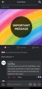 It isn’t clear in this message but they do differentiate between CalmWear and CalmCare. It is very subtle and on first glance, someone might not catch that.