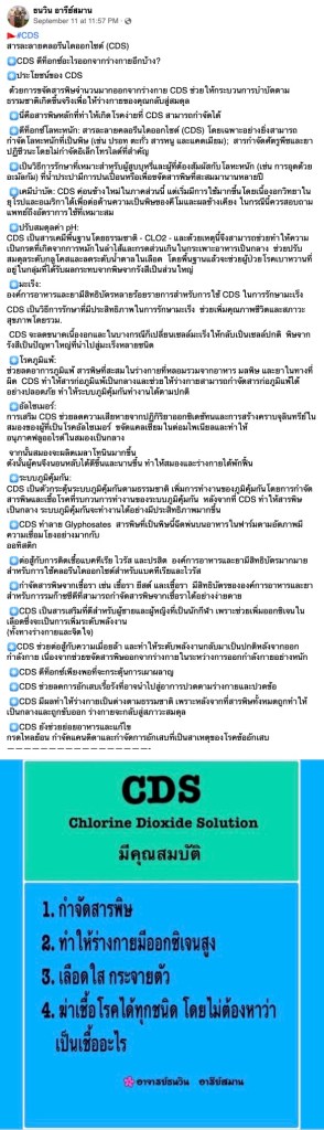 There were repeated shares of a false claim that drinking CD can “kill all disease” and other health benefits. As most of you know, its extremely toxic and should never be ingested by anyone.